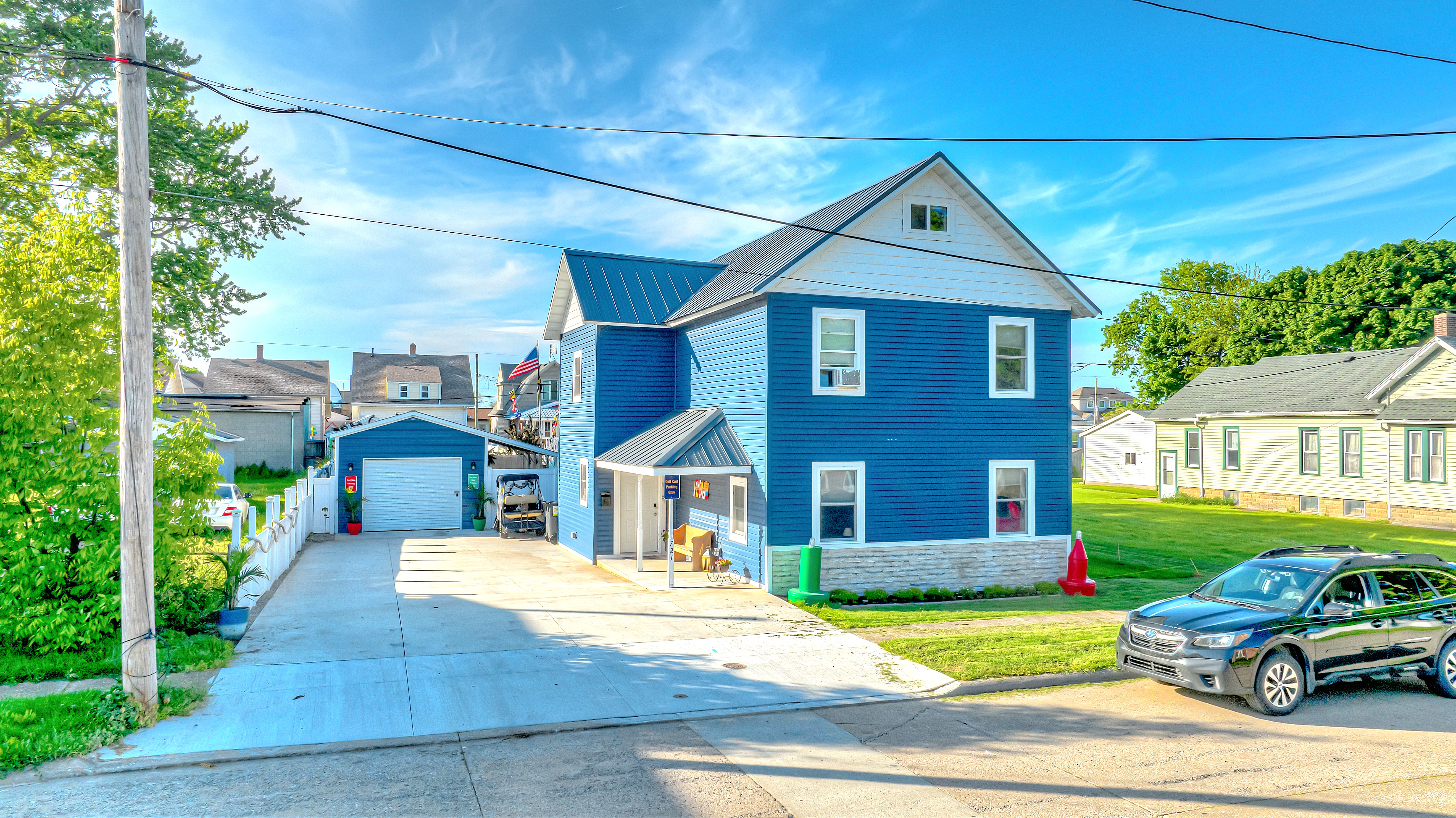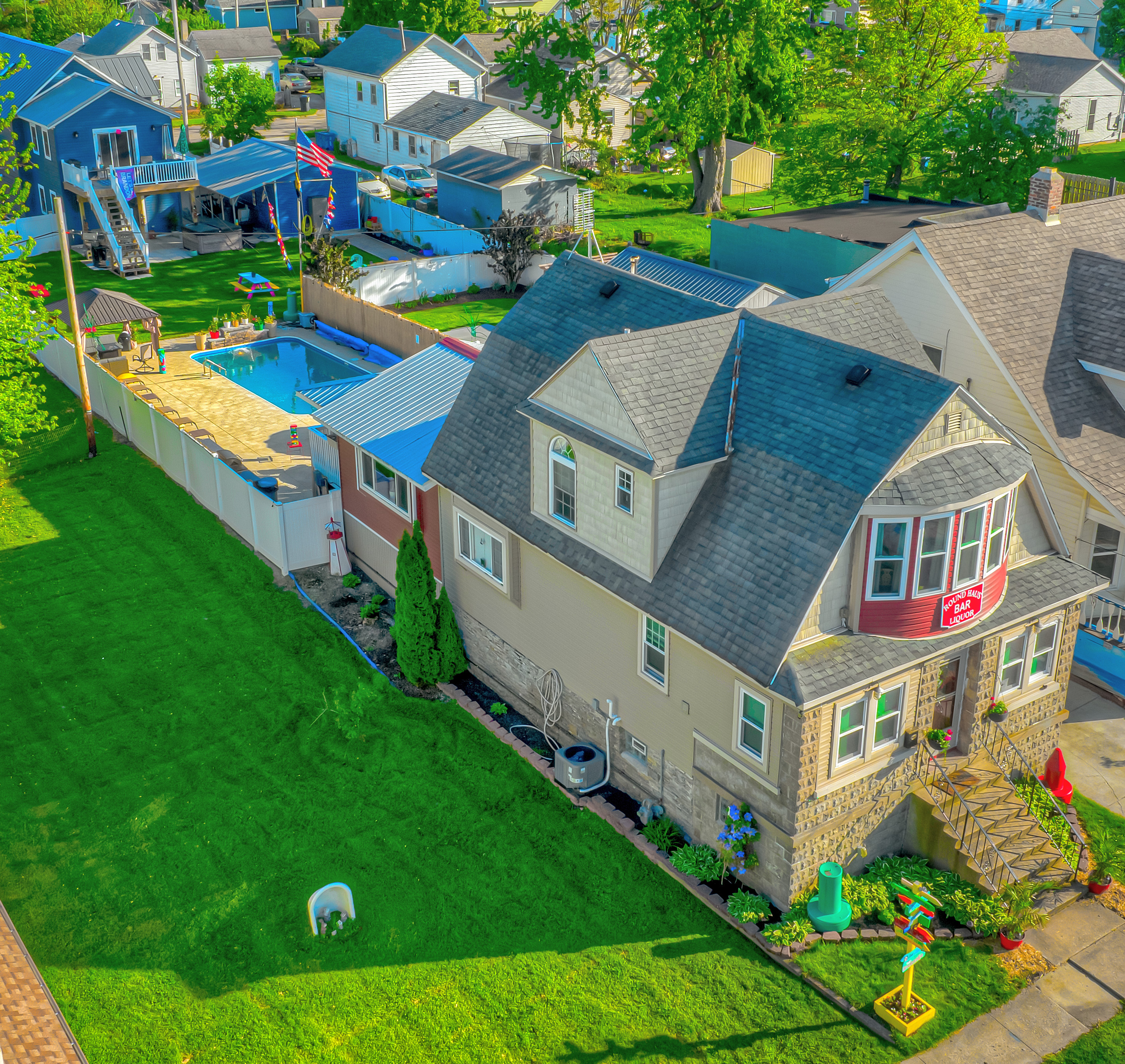 Both homes are great Cedar Point Rentals! Both of our homes adjoin each other via the back yards and have access to the built in pool. Since we own through to both streets in front and behind us you have access to 2 back yards with more parking, more activities and of course the only built in, heated pool in Sandusky & walk to downtown Sandusky! We also have EV chargers at both properties so bring your Tesla or other EV car. Adaptor for EV charging is the NEMA-14-30.